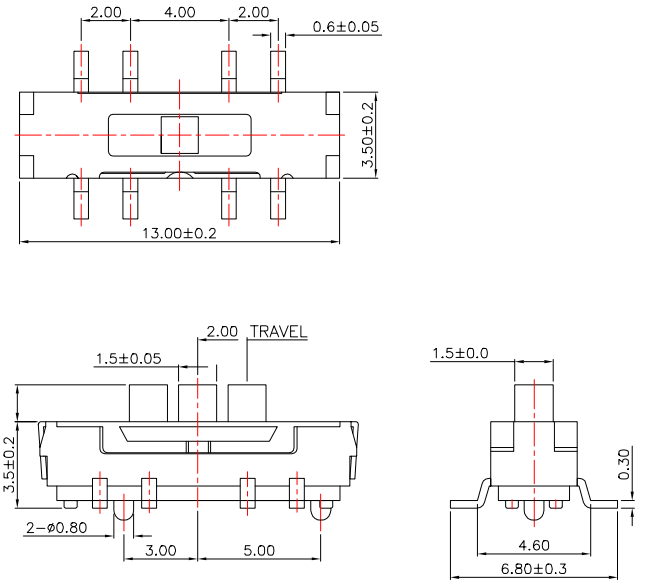 使用溫度范圍:﹣10℃~+50℃;壽命:10,000 Cycles;行程:2.0±0.1mm;按力:200±70gf;開關高度有2/3/4mm可選