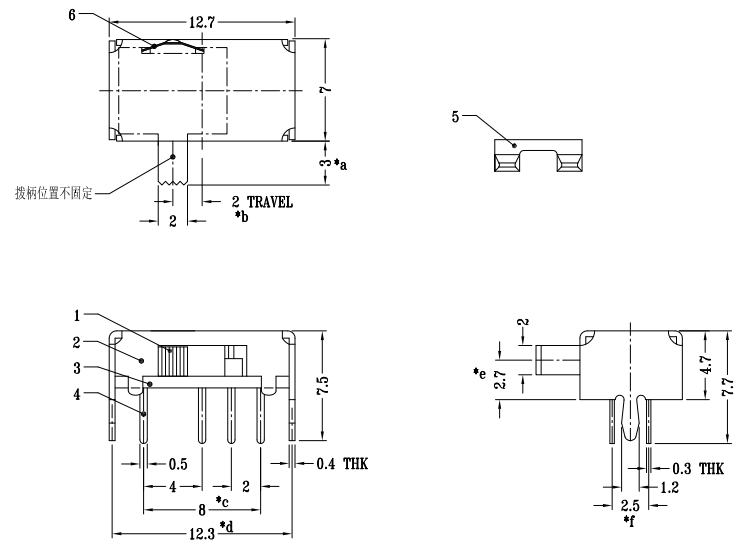 臥式雙排插腳撥動開關(guān)三檔可調(diào)