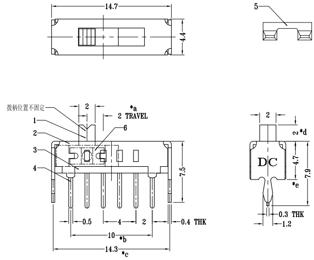 立式單排插腳撥動開關長柄