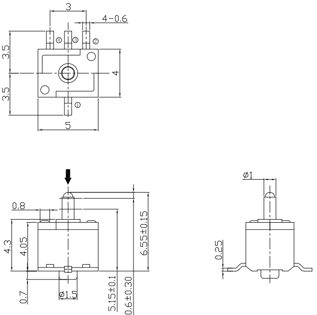 開關總高6.55mm;通電行程0.6mm;最大行程1.4mm;壽命:5萬次