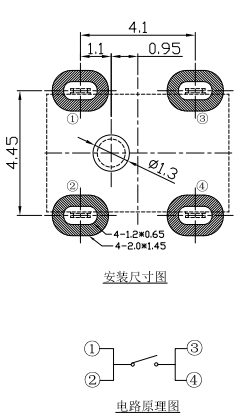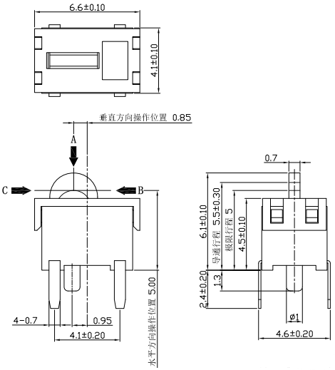 開關總高6.1±0.1mm;導通時開關高5.5±0.30;操作開關極限時高4.5±0.1mm。