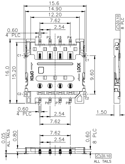 掀蓋式 MICRO SIM卡座 4*1 H=1.5