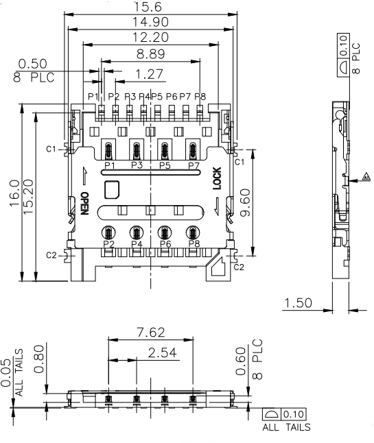 SHELL:NICKEL UNDERPLATED OVERALL 50u" Min,