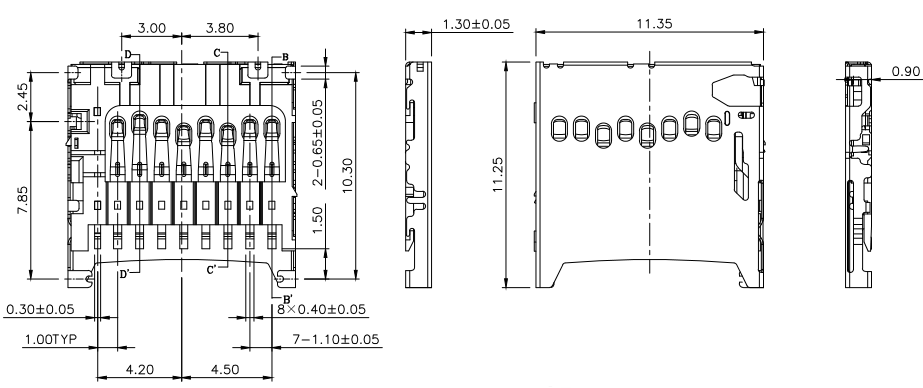 SHELL:30u"Min.NICKEL UNDERPLATED OVERALL GOLD FLASH PLATED ON SOLDER TAILS