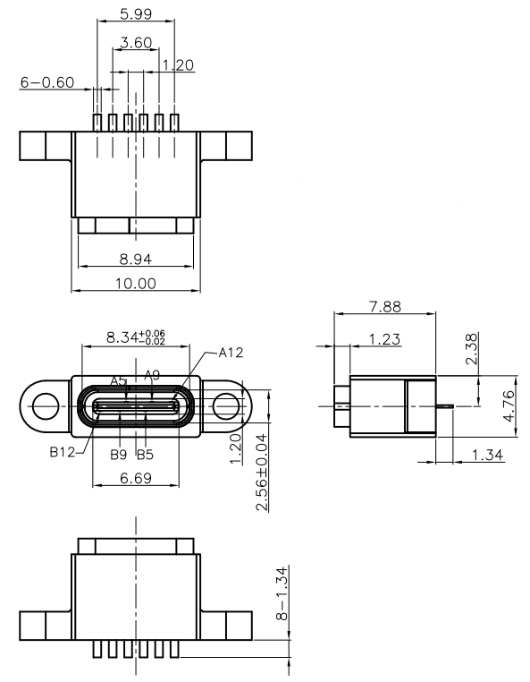 IPX8防水Tape-C USN 6PIN 立式