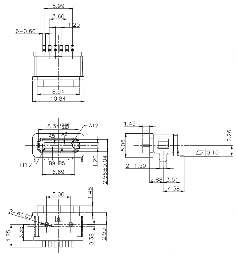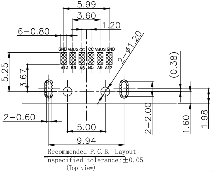 IPX8 防水Type-C USB 板上6PIN