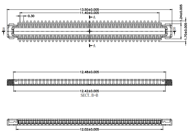 毛邊最大0.03mm,厚0.05mm;端子接地片共面度在0.05mm以內,正位度0.02mm以內;