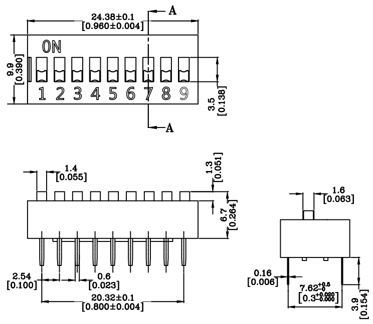 9P平撥開關24.38*9.9*6.7mm(2.54)