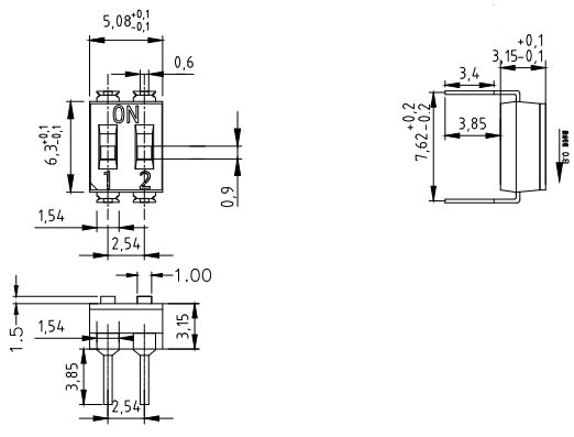 2P高推插腳5.08*6.3*3.15mm(2.54)